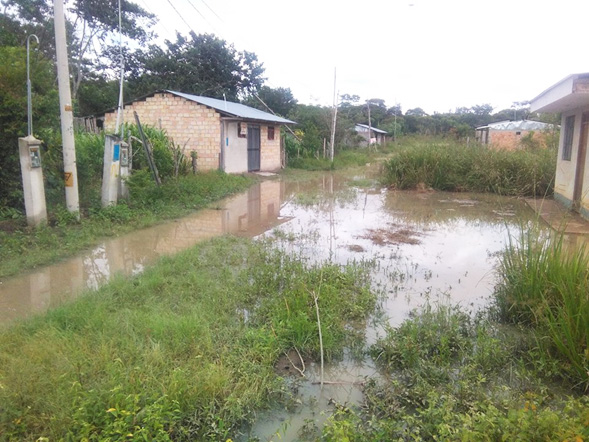 Moyobamba. En medio de una laguna quedaron los ambientes del Programa no escolarizado de Educación Inicial (PRONOEI) de la asociación de vivienda Alto Mayo, ubicada a 5 minutos del centro de Moyobamba y con ello diez niños menores de cinco años ayer lunes no pudieron asistir a sus labores educativas.