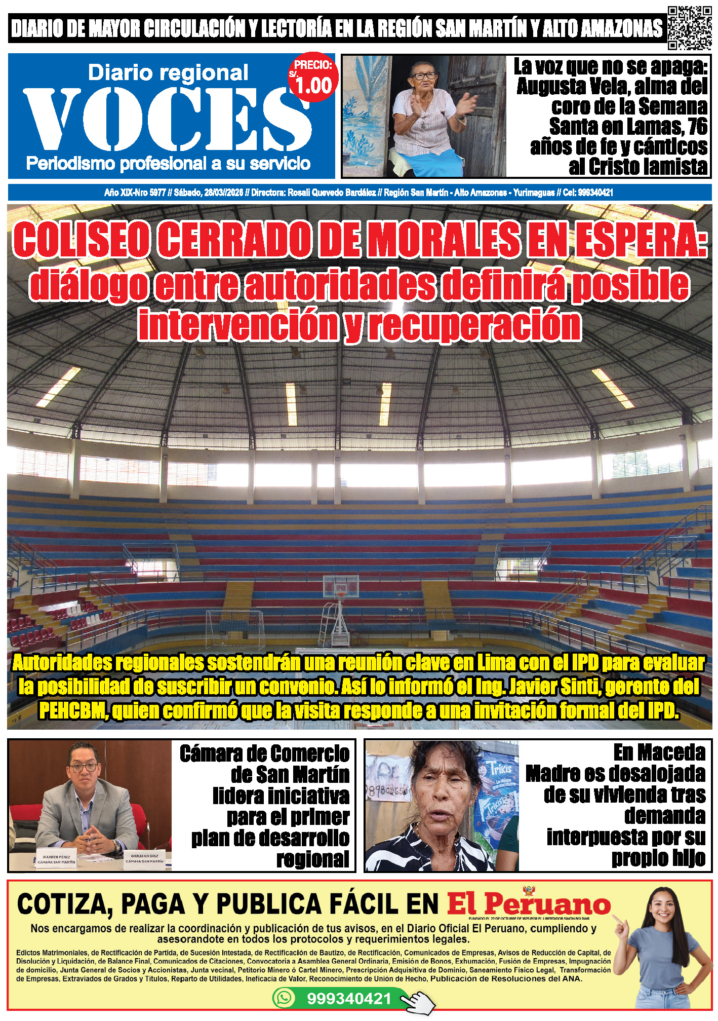 🌫️ 21.5 °CTarapotosábado, marzo 28, 2026