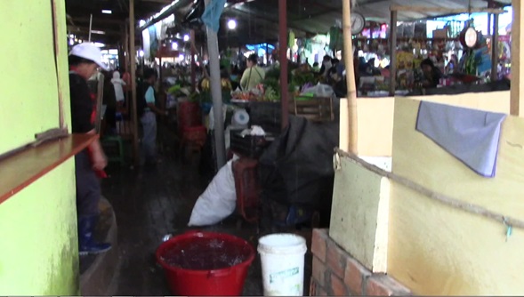 El cambio climático dejó notar las deficiencias y mal estado de los materiales utilizados para la construcción de la infraestructura de este centro de abastos, ocasionando además que las ventas bajen considerablemente ante la notable ausencia de usuarios a causa de la lluvia.