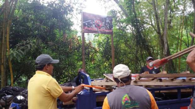 Se pegaron letreros de concientización a la comunidad por parte de Proyecto Huallaga, además de por parte de los artistas, miembros del colectovo SIMBIOSIS.