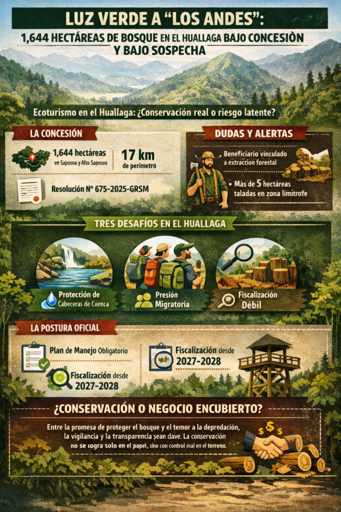 En la provincia del Huallaga confluyen tres fuerzas: la necesidad de proteger cabeceras de cuenca que abastecen de agua a Saposoa y otras localidades; la presión migratoria y económica que impulsa la ocupación del bosque; y una débil capacidad histórica de fiscalización estatal. La concesión “Los Andes” se convierte así en símbolo de una encrucijada mayor: conservación declarada frente a control efectivo.