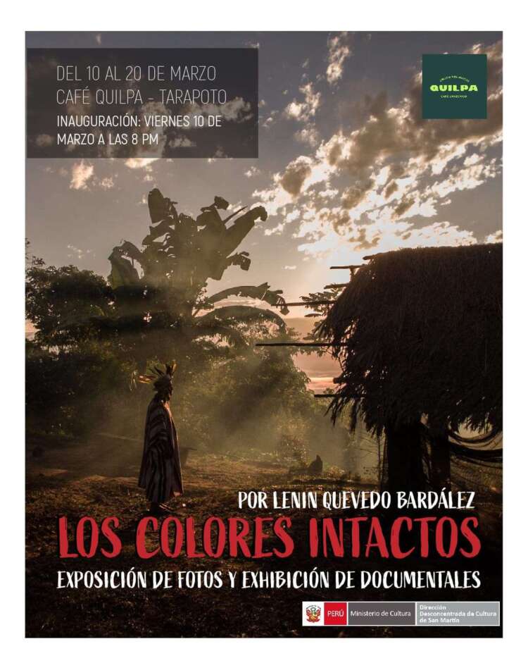 Tarapoto, 23 de febrero de 2023 – El documentalista peruano Lenin Quevedo presentará su exposición «Los Colores Intactos: Inmersión en el Perú Desconocido» en el Café Quilpa de Tarapoto del 10 al 20 de marzo de 2023. La muestra estará compuesta por 20 fotografías seleccionadas de los viajes que ha realizado por todo el país.
