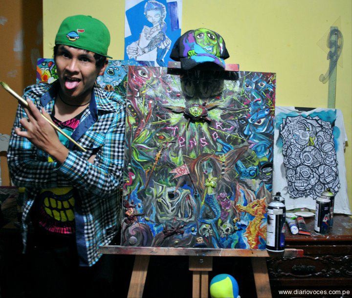 Un artista plástico limeño de paso por Tarapoto y que plasma la pintura en lienzos, arte corporal, escultura de diversos materiales como, yeso, cerámica, materiales reciclados, y como artista urbano, el grafiti que puede ser plasmado por las latas de aerosol porque es un tipo de pintada más rápida o en algunos con pintura y aerosoles, con un toque de laca fijadora al final para que quede un mejor acabado inmortalizado en un mural. También se dedica a hacer muñecos de cerámica de sus personajes o le hacen pedidos personalizados con caricaturas en muñecos con un toque original.