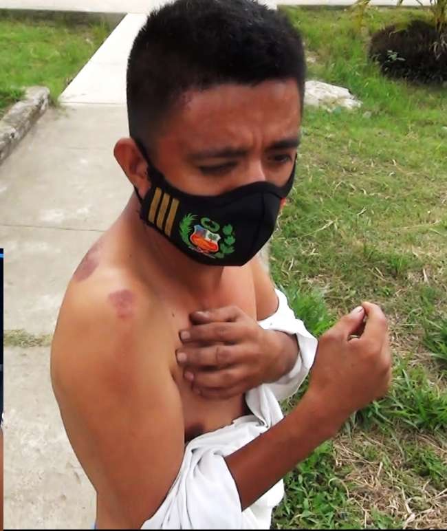 Se trata de Manuel Villoslada Hernández de 32 años de edad, quien es conocido por estar siempre por la Comisaría de Tarapoto; en su espalda se observa hematomas producto agresión, además presenta herida cerca del ojo derecho en el abdomen y en las rodillas.