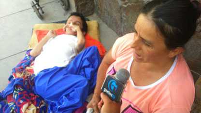 Estuvo junto a su madre Zulema Delgado, quien pedía limosna para solventar los gastos que significan paliar esta enfermedad. “Necesito diariamente diez soles para alimentarlo y 300 soles mensuales para comprarle sus medicinas y pañales desechables” indicaba la madre.
