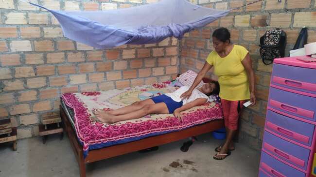 Artemisa Satalaya Tuanana, es la madre de la paciente, quien clama por apoyo para que su hija comience a recibir terapia, ya que ella escucha y entienden las cosas, pero no habla ni camina. Otro inconveniente es desde que nació su último hijo no pudo amantarlo, porque a los pocos días cayó enferma y ahora el menor necesita leche en volvo para que pueda alimentarse.