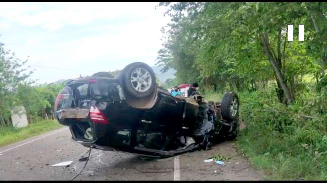 Madre e hija se llevaron un susto luego de despistarse camioneta en la que viajaban, la unidad terminó prácticamente destruida.