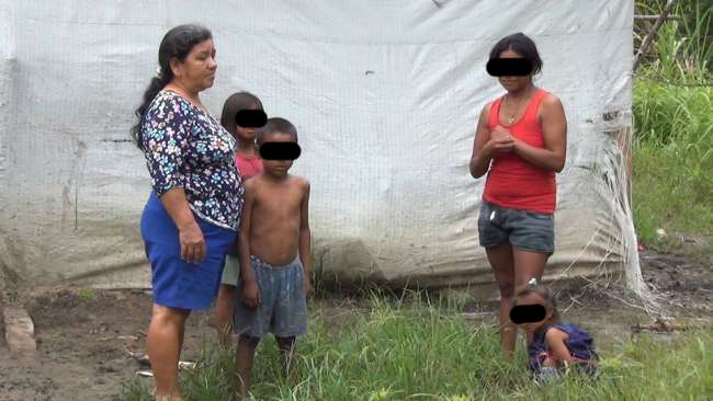 En una cabaña llena de lodo vive una madre de familia discapacitada junto a sus tres menores hijos, ella responde al nombre de Rosa Tenorio Linares de 28 años de edad, quien tuvo que separarse de su pareja, porque empezó a agredirla física y verbalmente y a pesar que lo denunció en la Comisaría de Morales, nunca tomaron acciones al respecto.