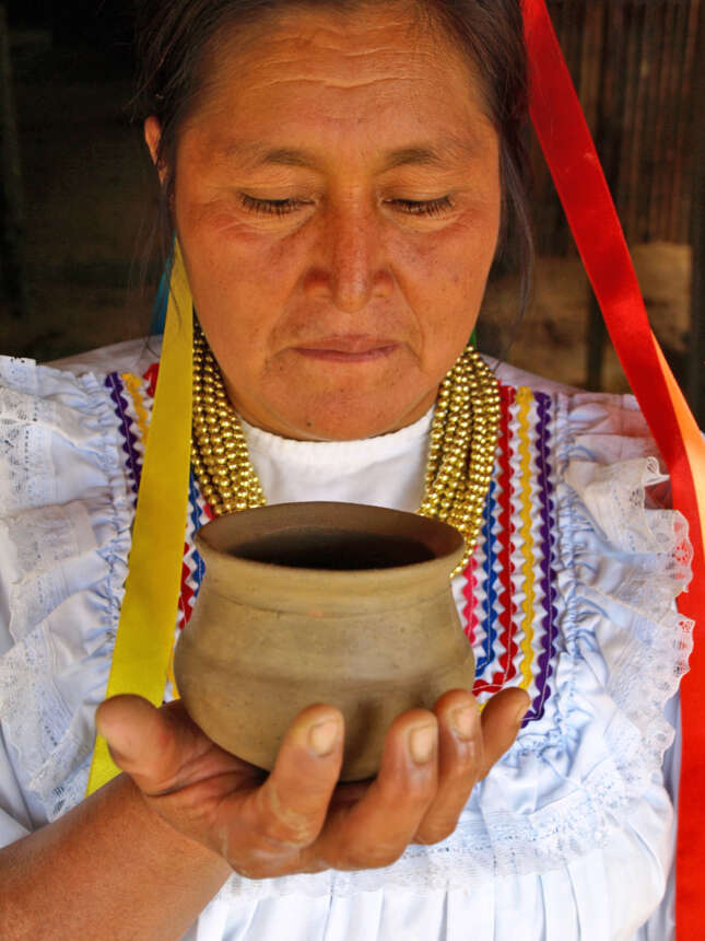 Manuela ha dedicado más de 35 años a la cerámica y al pintado de las iconografías, convirtiéndose en maestra y ejemplo para muchas otras mujeres y hombres interesados en aprender y entender el significado de las iconografías, que implica una entrega absoluta de amor y de vivencias, se vuelve un acto sagrado. “cuando me voy a la chacra, miro las hojas de los árboles y las flores de las plantas, son ellos que me inspiran para pintar en las cerámicas”, dice gustosa, asegura que su trabajo le ha dado respeto y espacio en su comunidad.