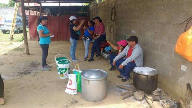 Desde ayer, instalaron la olla común en el almuerzo, frente a su local sindical.