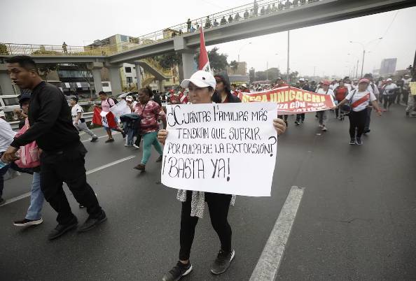 A la movilización se han sumado mercados, bodegueros, mototaxistas, amas de casa y organizaciones de la sociedad civil cansados de la falta de resultados concretos frente al acoso de los extorsionadores y delincuencia.