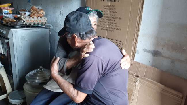 Las integrantes de la Asociación civil Manos Unidas de Tarapoto, entregaron ayuda con víveres a una pareja de ancianos, se trata de don Oswaldo Ramírez Rosales de 73 años y María Marlene Quezada Ávila de 96 quienes, viven solos en la primera cuadra del jirón progreso en la urbanización 9 de abril de la ciudad.
