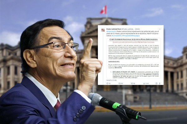 La Corte Superior Nacional de Justicia Penal Especializada dictó 12 meses de impedimento de salida del país contra el exmandatario Martín Vizcarra en el marco de las investigaciones que se le sigue en su contra por los casos ‘Lomas de Ilo’ y ‘Hospital de Moquegua’.