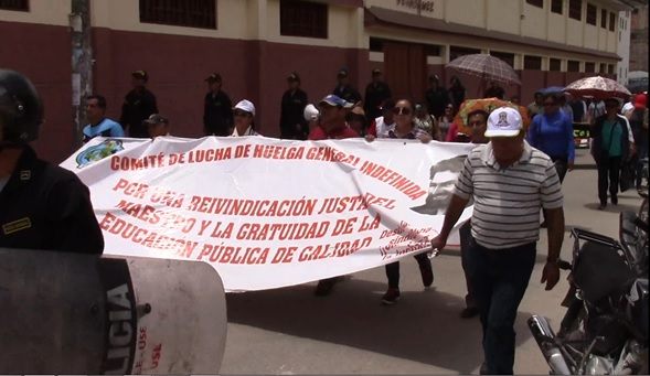 Moyobamba. Wilson Torres Díaz, dirigente de la nueva facción del SUTEP liderada por Pedro Castillo, dio a conocer que en un 97% los maestros de la provincia de Moyobamba acataron el paro de 24 horas convocado por la dirigencia nacional, la concentración se inició en la Casa del Maestro ubicada en la quinta cuadra del jirón Callao donde se dio lectura a la plataforma de lucha, para luego realizar un recorrido por las calles céntricas de la ciudad mostrando pancartas y exclamando lemas sindicales.