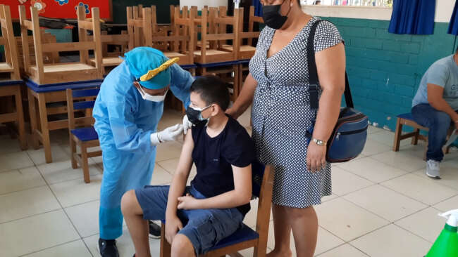 Más de 200 estudiantes de la IE. Virgen Dolorosa de 11 y 10 años de edad, recibieron la primera dosis de la vacuna contra la Covid19. Valeria Delgado, responsable de inmunización del hospital de la Banda de Shilcayo, señaló que no solo vacunarán a los alumnos de dicho plantel, también a la población en general del grupo etario de 5 a 11 años de edad. La inoculación se desarrollarán los días jueves y viernes.