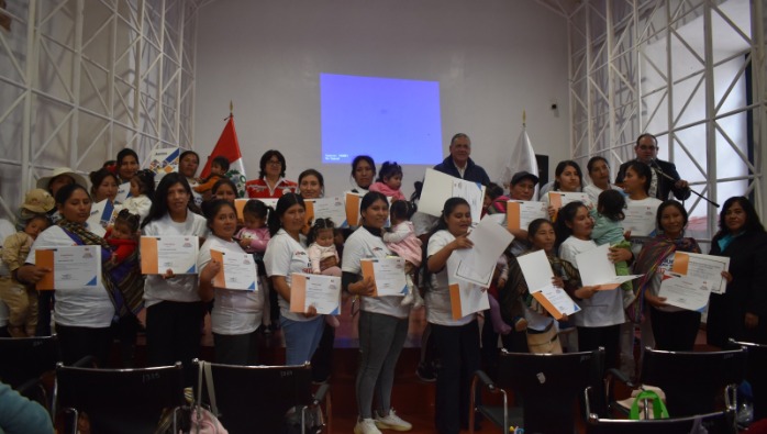 Las madres que participaron en el programa educativo, impulsado por el programa Juntos en alianza con la Universidad Peruana Unión, recibieron certificados por haber culminado 72 horas académicas en las sesiones educativas desarrolladas en tres módulos orientados al liderazgo, la salud preventiva y el cuidado materno-infantil a fin de prevenir la anemia.