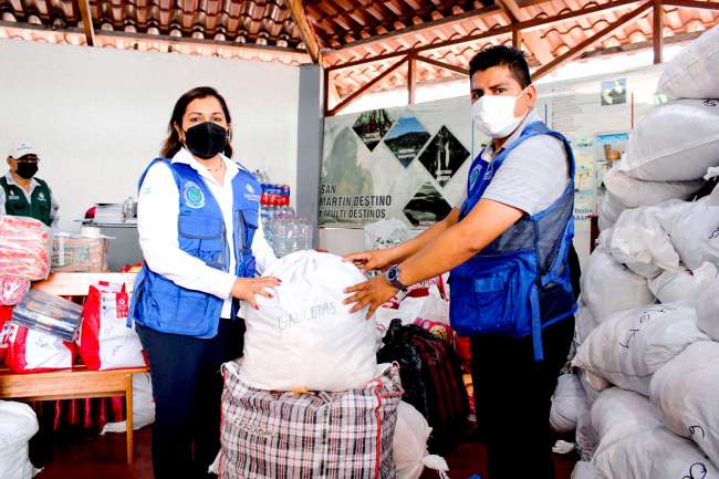 Más de 8 toneladas métricas de ayuda humanitaria logró acopiar el Gobierno Regional San Martín, en las ciudades de Moyobamba, Tarapoto, Juanjuí y Tocache, durante la campaña de recolección de alimentos no perecibles, agua, ropa, frazadas, entre otros enseres, que serán entregados a los damnificados de San Martín y Amazonas, afectados por el sismo del domingo 28, que ha dejado en la intemperie a muchas familias.