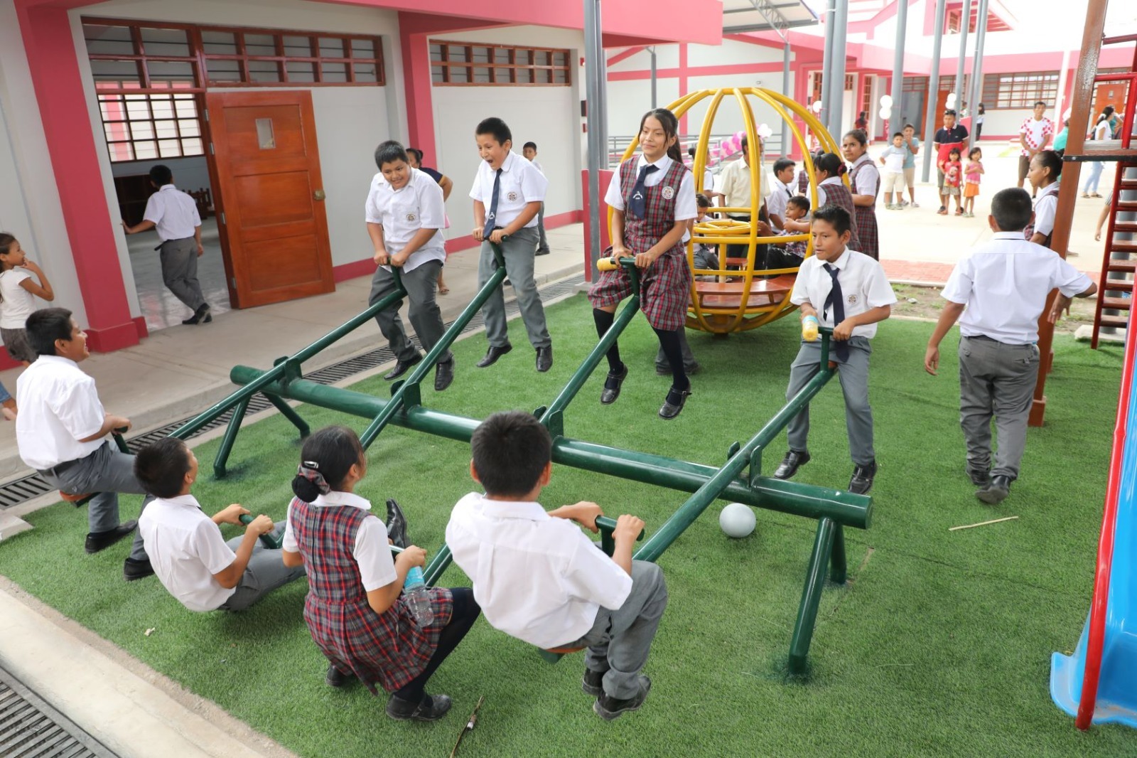 La obra, también considera 16 aulas pedagógicas, ambientes administrativos, salas de biblioteca, laboratorio y comedor con su respectivo equipamiento, losa multiuso con cobertura metálica, mobiliario para estudiantes y docentes, instrumentos de banda de música; cuenta con portadas de ingreso, cerco perimétrico para garantizar la seguridad del local escolar, entre otros importantes componentes.