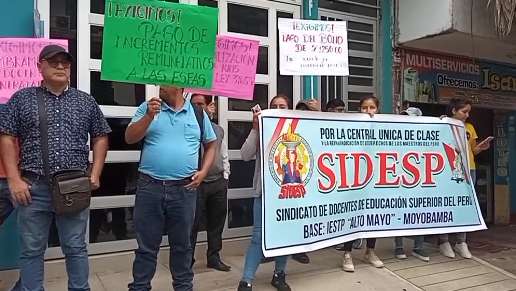 Esta mañana, los docentes del Tecnológico Alto Mayo de la ciudad de Moyobamba, mediante plantón, reclaman en los exteriores de la Dirección Regional de Educación que vienen esperando el nombramiento más de tres décadas, que esta vez puedan escuchar su reclamo justo.