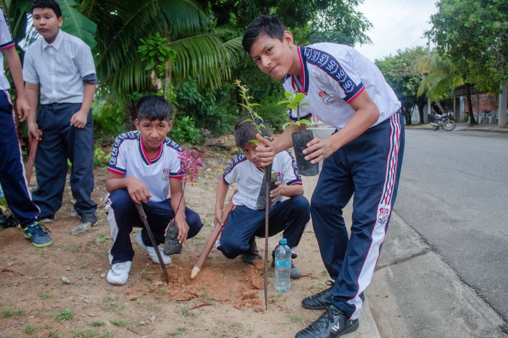 Son los estudiantes de todos los niveles de la educación básica que se suman con mucha emoción para plantar un árbol y cuidarlo.