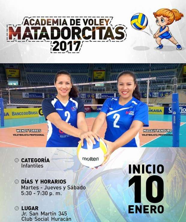 Magali Panduro y Wendy Torres son dos destacadas deportistas de nuestra ciudad y con amplia experiencia en el voleibol lanzan su nuevo proyecto con su academia de voleibol “Las Matadorcitas” con la finalidad de volcar sus experiencias hacia las niñas que están entre las edades de 5 a 14 años.