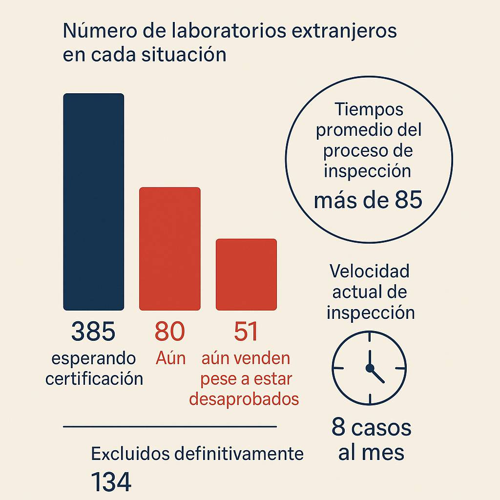 En el último año, apenas se avanzó: de 474 laboratorios en espera en 2024, la cifra solo bajó a 385 en 2025. A este ritmo, tomaría más de cuatro años completar las inspecciones pendientes.