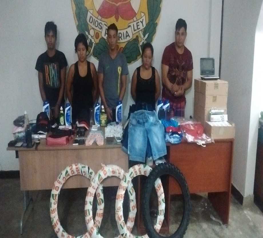 Con esta captura, la banda quedó desarticulada, y sus integrantes están en prisión preventiva, bajo investigación por la presunta comisión del Delito Contra El Patrimonio – Hurto agravado (Tenderos), cuyos integrantes son: Elvis Abraham Vargas Vásquez (33), Norvin Tello Pacaya (21), Jhony Oliveira Yahuarcani (31), Miluska Mendoza Plaza (29), y Teysi Zumba Tapullima (23); La menor quedó bajo custodia policial hasta que sea trasladada a un centro especial de menores. (Roger Torres)