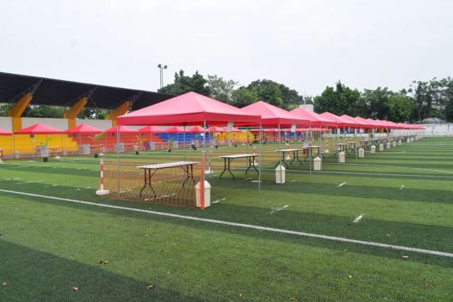 – 41 toldos implementados con mesas cada uno con tachos de basura.