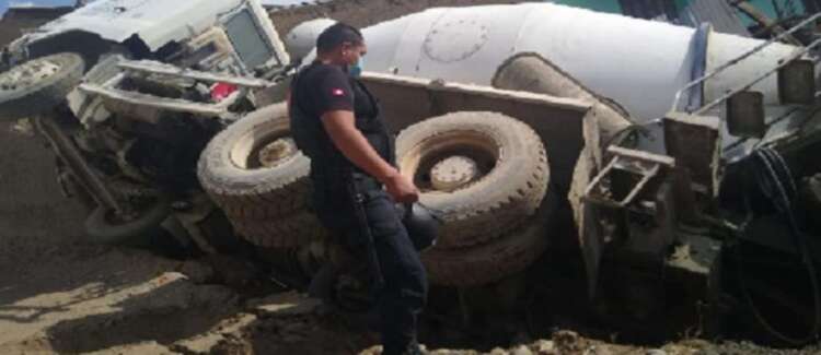 Un camión mezclador de cemento se despista en la carretera Fernando Belaunde Terry, en el sector de Rumiyacu cerca del cruce de Uchuglla de la ciudad de Moyobamba, hasta donde llegaron efectivos de la unidad de serenazgo y la policía, para las diligencias correspondientes.