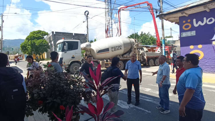 El tránsito vehicular en la intersección de los jirones Juan Vargas y Jorge Chávez de Tarapoto se vio interrumpido ayer al mediodía debido a la acción de un conductor de un camión mezclador de cemento. El vehículo se estacionó en plena bocacalle para descargar material en una construcción, sin considerar el hecho de que obstruía una calle principal, lo cual generó incomodidad entre los conductores.
