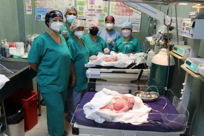 El equipo médico conformado por los ginecólogos Manuel Pérez Kuga y Luis Cárdenas, junto al apoyo de las anestesiólogas Alejandra Chong y Damaris Haro, además de los enfermeros de sala de operaciones pudieron atender la cesárea con éxito y ahora los recién nacidos se encuentran en la Unidad de Cuidados Intensivos Neonatal (UCIN).