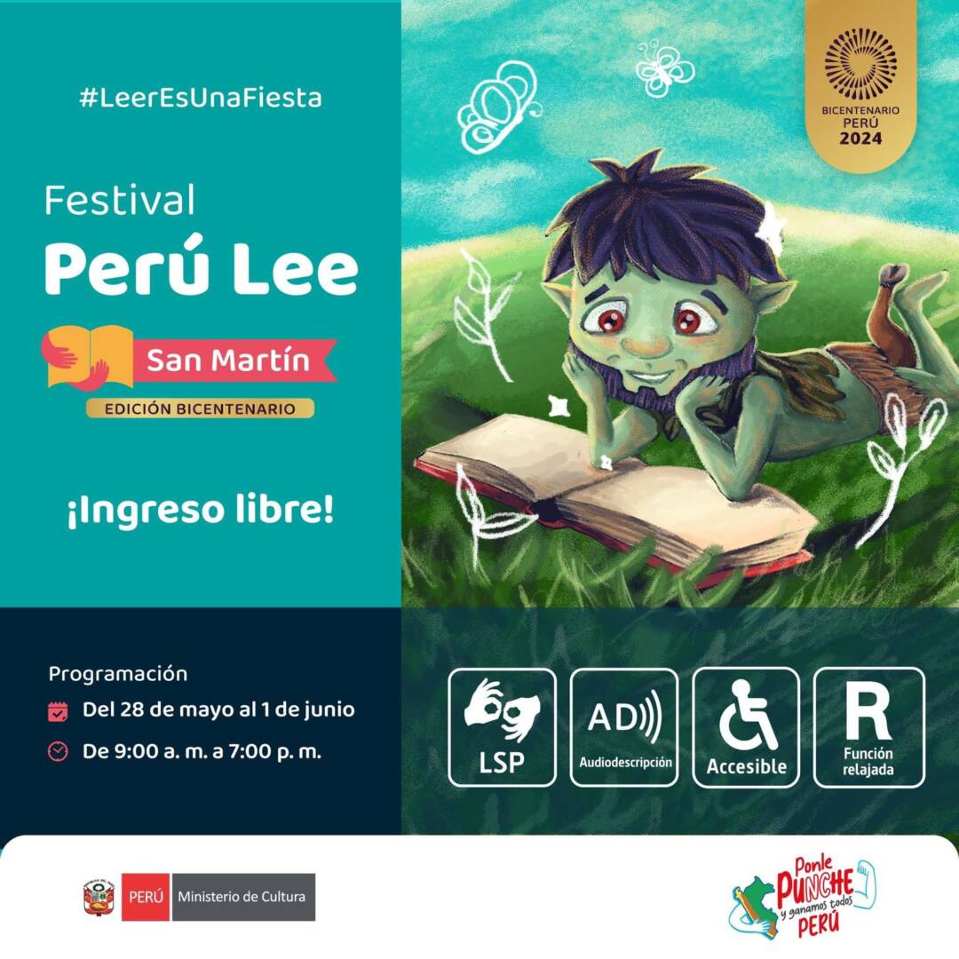 El Ministerio de Cultura invita a participar a toda la población en el Festival Perú Lee San Martín, un evento emblemático que se viene realizando en su segunda edición para la promoción del hábito de la lectura y el fomento de la cultura en la región.