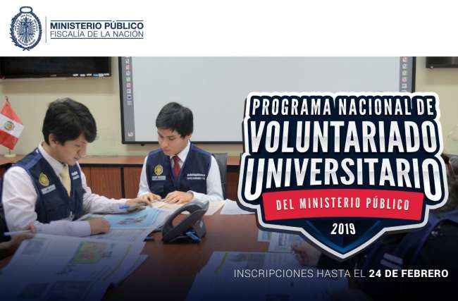 El Ministerio Público del Distrito Fiscal de San Martín, convoca a los jóvenes sanmatinenses a participar del proceso de convocatoria y postulación al Programa Nacional de Voluntariado Universitario del Ministerio Público (PNAVU), el cual ha sido creado mediante Resolución de la Fiscalía de la Nación Nº 221 – 2019 – MP – FN.