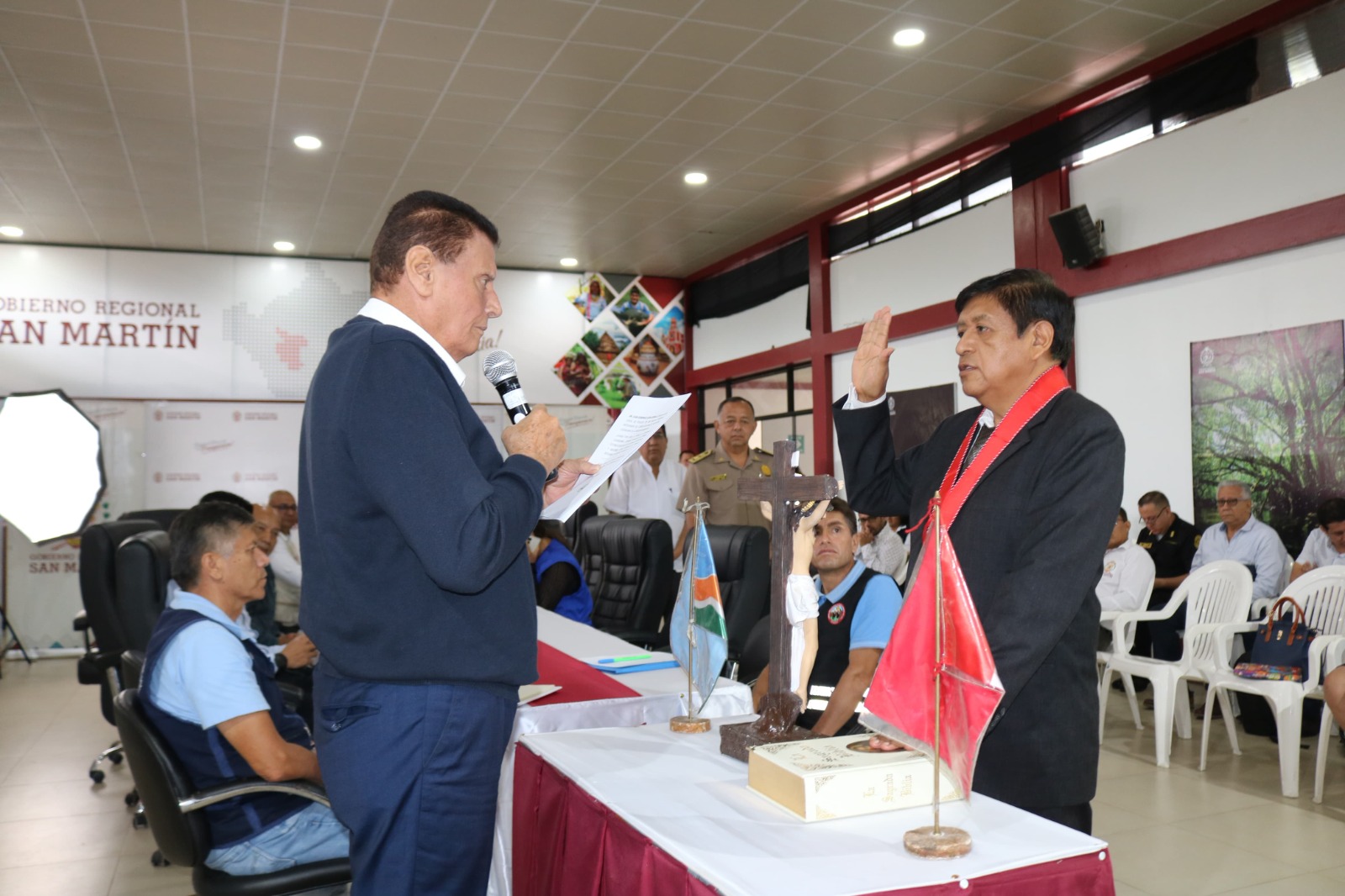 Junto al fiscal León Estrella también juramentó, ante el gobernador Walter Grundel Jiménez, quien preside el Coresec San Martín, el presidente de la Corte Superior de Justicia de San Martín, el general jefe de la Región Policial de San Martín y el director de la Dirección Regional de Salud de San Martín.