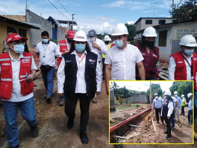 Ministra de Vivienda, Construcción y Saneamiento, Solange Fernández inspeccionó avance de proyectos de saneamiento en Morales, Cacatachi y Picota