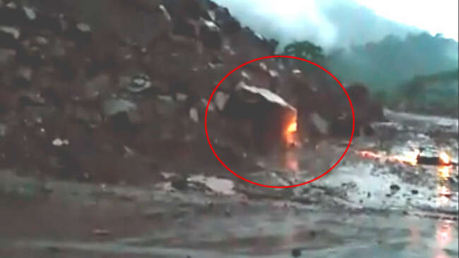 En medio de la torrencial lluvia que cayó desde la madrugada en esta parte de la Amazonía, la carretera Shapaja –Chazuta se vio restringida en el sector Mativuelo, sector vulnerable de la vía donde se producen deslizamientos y derrumbes de piedra y lodo. Un poblador de la zona, registró cuando un motociclista junto a su unidad, terminaron atrapados en la zona inestable.