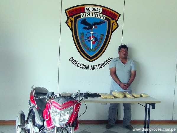 Un motociclista que transportaba más de siete kilos de pasta básica de cocina lavada, fue intervenido ayer por agentes del Departamento de Accionas Tácticas Antidrogas de San Martín (DEPOTAD), la droga  procedía de la provincia de Mariscal Cáceres,  con destino a Tarapoto, la persona que trasportaba el estupefaciente será investigada durante quince días, para luego ser puesta a disposición del Poder Judicial, donde se determinará su situación jurídica.