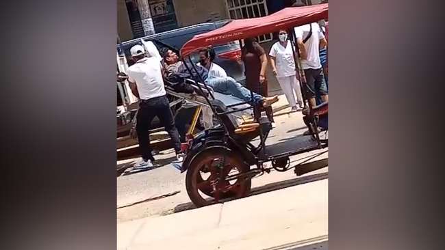 Sin embargo, algunas personas intentaron apoyar al personal de la ambulancia y en cuando todos querían ayudar, el paciente se cayó, debido a que las patas de la camilla se doblaron, situación que originó el incidente, que fue cuestionado por los testigos. En cuestión de segundos fue subido al vehículo y el paciente fue conducido al Hospital II – 2.