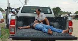 El herido fue auxiliado por el conductor de la camioneta, quien trasladó a Pinedo Pisco al hospital de EsSalud de Tarapoto, la víctima durante el trayecto al nosocomio estuvo inconsciente, después le diagnosticaron traumatismo encéfalo craneano moderado y permaneció en observaciones. (Hugo Anteparra)
