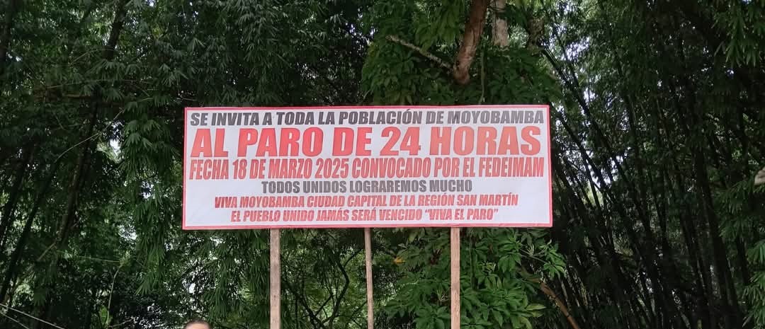El Frente de Desarrollo Integral de Moyobamba y el Alto Mayo (FEDEIMAM) ha convocado un paro preventivo de 24 horas para el próximo 18 de marzo.