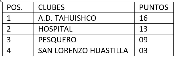 Primer partido: San Lorenzo de Huastilla 2 – 3 Asociación Deportiva Tahuishco