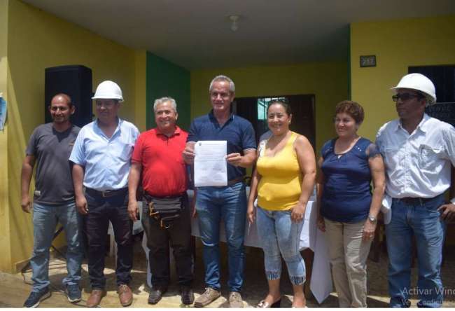 Alcalde Tedy del Aguila en compañia del presidente de los vecinos Richard Gonzales, entregó el cuaderno de obra para el inicio de los trabajos