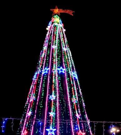 El árbol consta de 16 metros de altura, anteriormente era de 14 metros y la novedad de este año es que cuenta con luces de neón que le dan más realice a las luces para delicia de los tarapotinos.