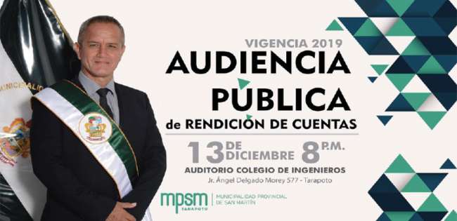 La Municipalidad Provincial de San Martín, tal como indica la Ley Orgánica de Municipalidades, realizará la audiencia Pública de Rendición de Cuentas para el periodo 2019.