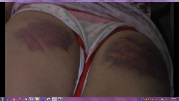 Maritza Reina, dejando a un lado la vergüenza, que de hecho otras mujeres no lo harían, se levantó la blusa y su prenda íntima para mostrar a la prensa en presencia de la Policía Nacional, los hematomas en sus dos nalgas, producto de la golpiza recibida, según ella, por mujeres ronderas.
