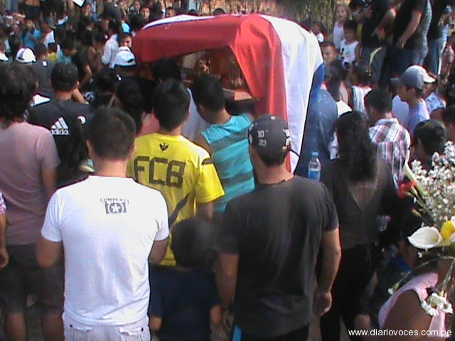 Nueva Cajamarca. cientos de personas acompañaron ayer el féretro del joven barrista del Unión Comercio más conocido como “pelao”, quien murió asesinado a balazos en la puerta de su casa.
