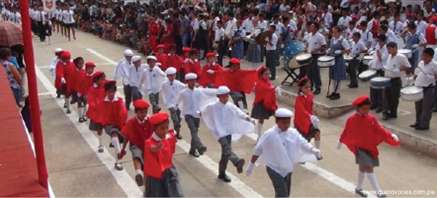 Las delegaciones de las instituciones educativas de inicial, primaria, secundaria y superior, que con gran fervor, civismo y envidiable disciplina expresaron su homenaje a la patria, incluso con coloridas estampas culturales costumbristas.