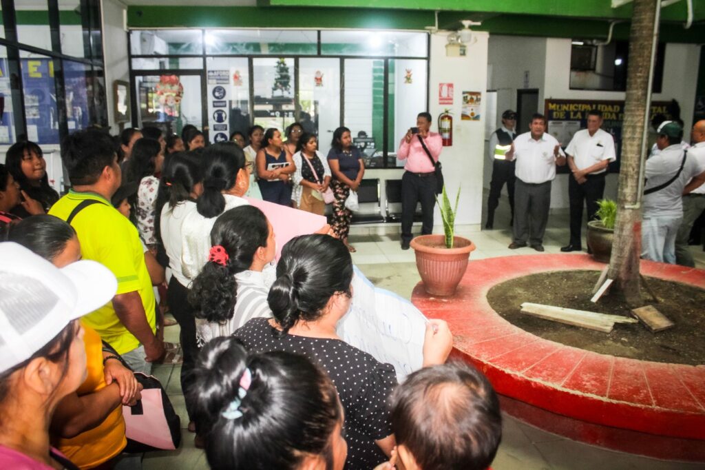 A solicitud del burgomaestre del distrito de La Banda de Shilcayo, se realizó una reunión en el despacho de alcaldía con la participación del Gobernador Regional de San Martín, dirigentes de la AA.VV. Nadine Heredia, docentes de la I.E. 1291, representantes de la UGEL San Martín, la consejera regional, pobladores y funcionarios municipales.
