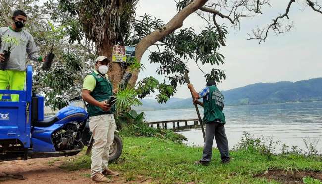 Un total de 500 plantones de diversas variedades fueron plantados el día de hoy a lo largo de la rivera del Lago Sauce.