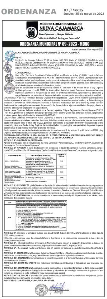 Municipalidad Distrital de Nueva Cajamarca: N 09-2023-MDMC